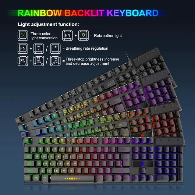 RGB Gaming Bundle The gaming keyboard can switch between three color modes.And there 7 colours circular breathing LED gaming mouse.The cool colorful light can eliminate the fatigue caused by work and make you feel very comfortable. Better LED lights to buy for your Gaming Setup