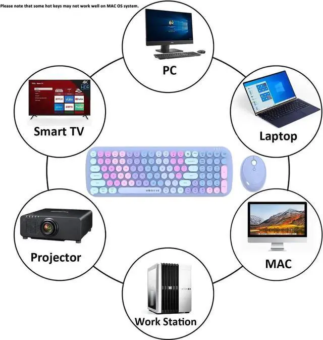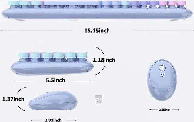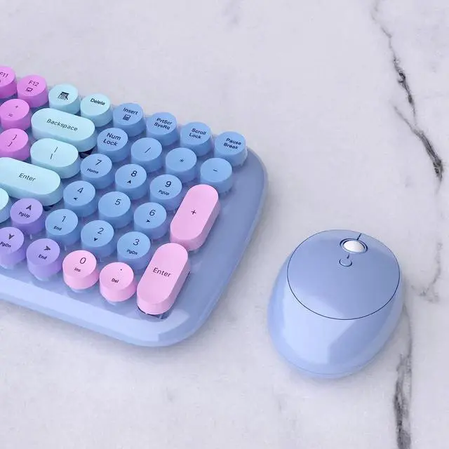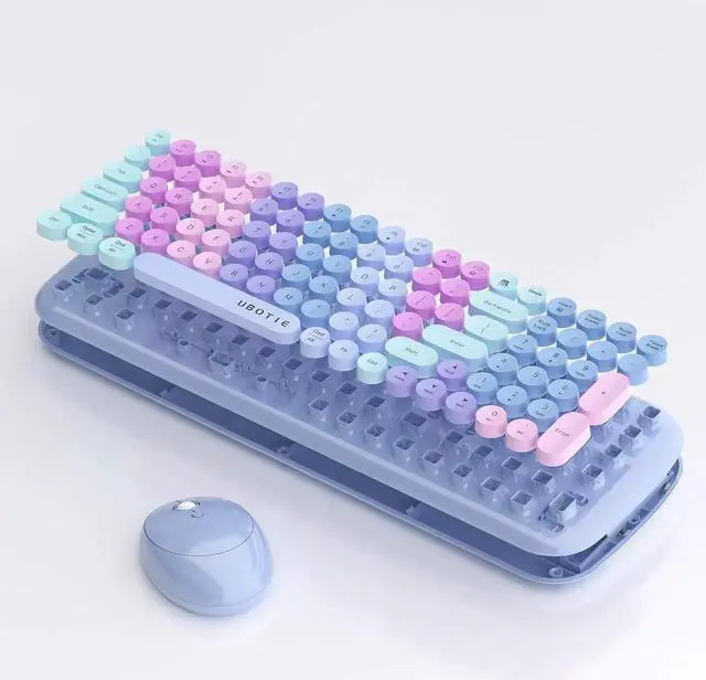Wireless Keyboards and Mouse Combos, UBOTIE Colorful Gradient Rainbow Color Retro Typewriter Flexible Keyboard, 2.4GHz Connection and Optical Mouse(Purple Rainbow)