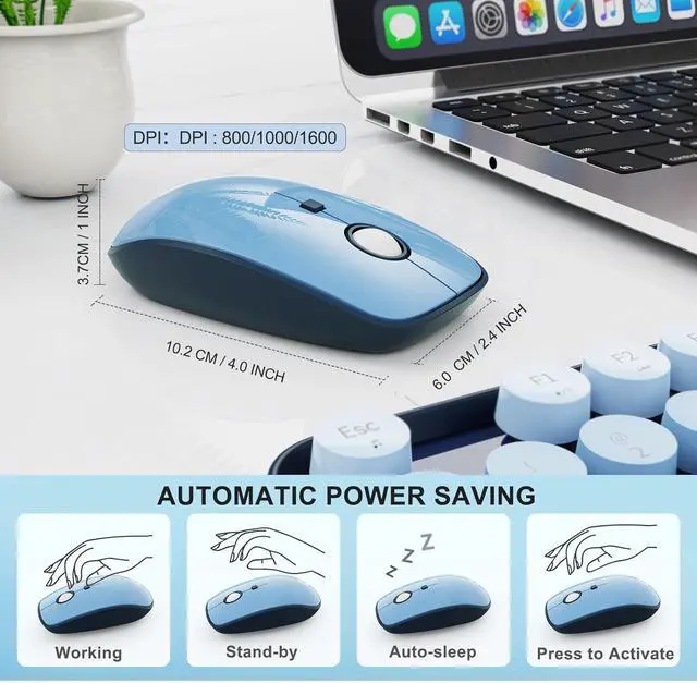 • FULL SIZE WIRELESS KEYBOARD AND SILENT MOUSEThanks to the silent micro-motion technology, the mouse clicks are nearly silent, eliminating bothersome knocking sounds that could disturb you and your family. The cordless mouse features multiple DPI levels (1600) for fast and precise cursor control, all while maintaining a quiet operation. Whether you're working or playing, you'll never have to worry about disturbing others' rest.