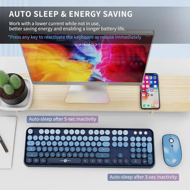 • WIDE COMPATIBILITYWireless Keyboard - Our wireless computer keyboard is 12 function keys for quick access to music, volume, mail, and more (please note that the hotkeys may not be fully compatible with Mac systems). This keyboard mouse combo is compatible with various operating systems, including Windows XP/ME/Vista/7/8/10/11. It works seamlessly with devices that have a USB slot, such as PCs, laptops, MacBooks, desktops, Chromebooks, and even Smart TVs.