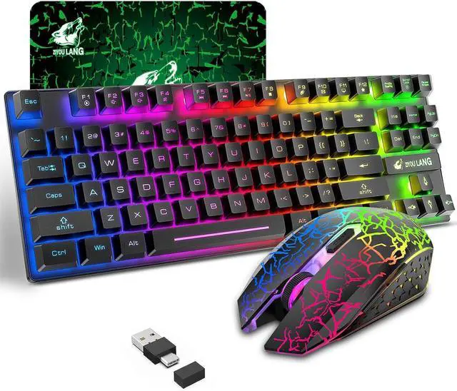 3 in 1 Rechargeable Keyboard and Mouse SetThis gaming combo includes a compact 87 key keyboard,a cool crack pattern mouse, and an exquisite mouse pad, equipped with large capacity inbuilt battery(Keyboard:3000mAh, Mouse:800mAh), ensure a long lasting battery working time for long-term use, easy to be charged by inserting the USB cable into your computer USB port, avoid to meet the trouble of replacing battery frequently, more convenient.The indicator light will remain on when charging, and off after fully charged, pls charge about 8 hours before using
