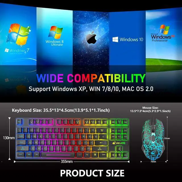Wide CompatibilityErgonomic 87 key layout, save space design, luminous character, removable keycaps, FN key combination, anti-ghosting function, inbuilt rechargeable large capacity battery, dazzling rainbow backlight, plug&play, this wireless keyboard and mouse combo can make the most of the extra space of your desk, perfect for game or daily use, can be compatible with computer mac which support Windows XP, WIN 7/8/10, MAC OS 2.0.Note if you want use it for game console like PS4, Xbox, Switch,etc, you will need corresponding adapter(buy separetly) to connect it, otherwise it will not work