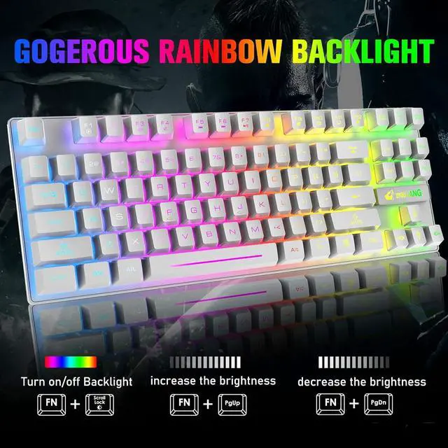 Gorgeous Rainbow BacklightThe wireless gaming keyboard can offer cool mixed color backlight effect, 3 level of brightness, more glowing in the dark, provide unique visual feast when using and enhance the competitive atmosphere when gaming, and also you can easily turn the backlight off or on by pressing FN+Scroll key to fit your real needs, and the backlight will auto turn off if no using in 2 minutes to save energy.If any questions, pls feel free to contact us