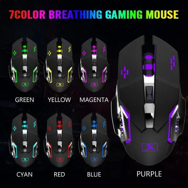 Gaming mouse The 7 color LED gaming mute mouse has a unique metal material roller, intelligent colorful light breathing light, 6-button button with the latest electroplated Electropland technology double flank, adjustable 4-speed DPI (800-1200-1600-2400), accurate positioning, touch Feel good, the game is more sensationa for mouse gamer.Keyboard Dimensions: 17.9*6.8*1.7 inch,Mouse Dimensions:4.9*2.5*1.5 inch