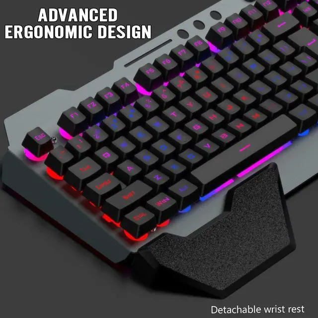 Gaming Keyboard Mouse ComboThe gaming keyboard is made of aluminum alloy brushed panel, which is sturdy and durable. It can be waterproof, and the keyboard builts-in 3000mAh battery. The mouse builts-in 800mAh battery ,eliminates the trouble of frequently changing batteries. No operation automatically sleeps within 5 minutes, any key wakes up