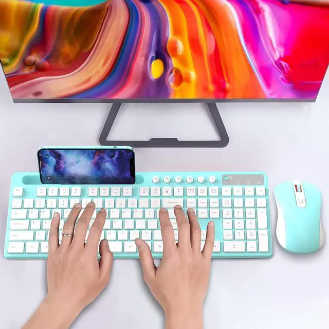 2.4G Ergonomic Wireless Computer Keyboard with 9.84inch Phone Tablet Holder;