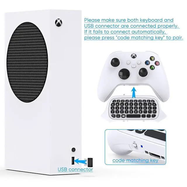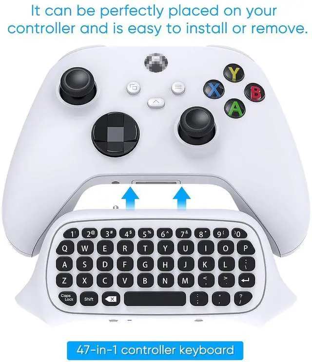 FYOUNG Keyboard for Xbox Series X/S Controller, for Xbox One/S/Controller Gamepad, 2.4Ghz Mini QWERTY Keyboard Gaming Chatpad with Audio/Headset Jack for XSX (White)