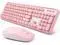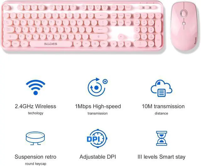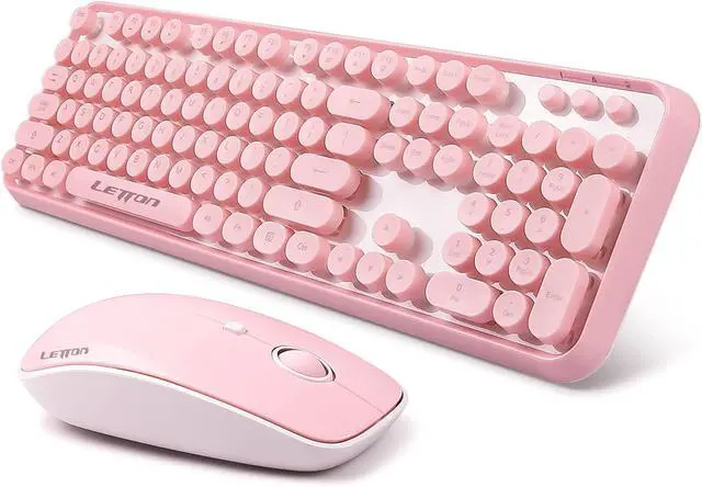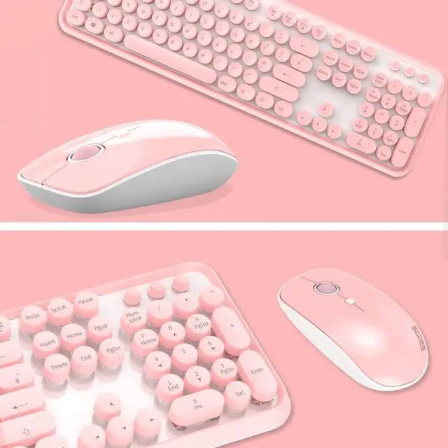 Aesthetic Retro Typewriter Design& Cute Vibrant ColorBrighten up your desk with this cute pink wireless keyboard and mouse combo. Featuring retro elegant refreshing pink color round keys and a vintage typewriter-inspired design, it combines classic aesthetics with modern 2.4GHz wireless technology. Its more than just a peripheral; its a stylish desk accessory that expresses your unique personality. Perfect for girls, women, and anyone who loves a fun desktop setup.