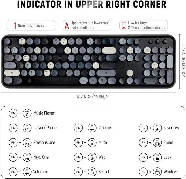 Aesthetic Retro Typewriter Design& Cute Vibrant ColorBrighten up your desk with this cute pink wireless keyboard and mouse combo. Featuring retro elegant refreshing pink color round keys and a vintage typewriter-inspired design, it combines classic aesthetics with modern 2.4GHz wireless technology. Its more than just a peripheral; its a stylish desk accessory that expresses your unique personality. Perfect for girls, women, and anyone who loves a fun desktop setup.