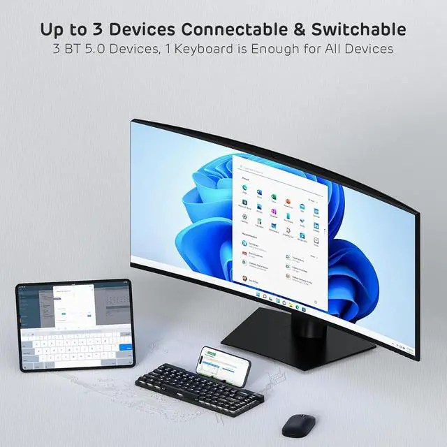 Wireless/Wired Mode - Connects with up to 3 devices via Bluetooth 5.0 Mode. The Compact Wireless Gaming Keyboard also supports wired mode with the included USB Type-A to USB Type-C cable.