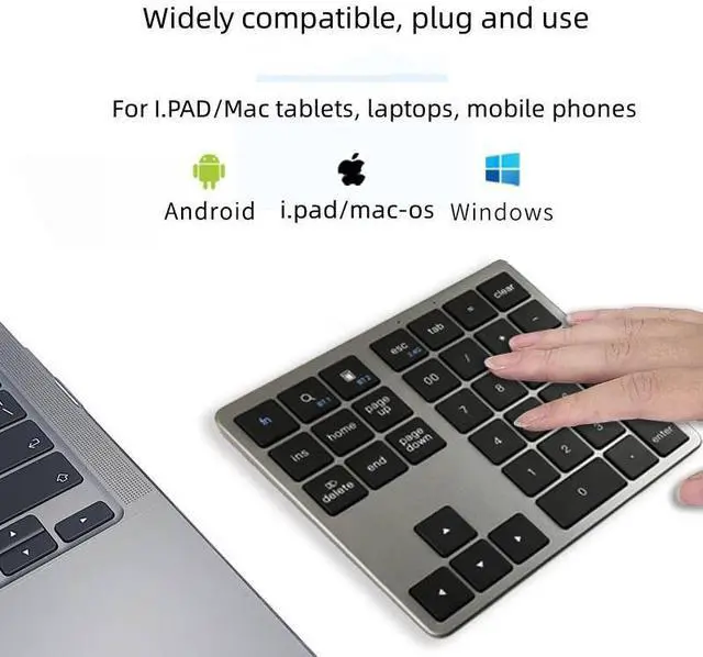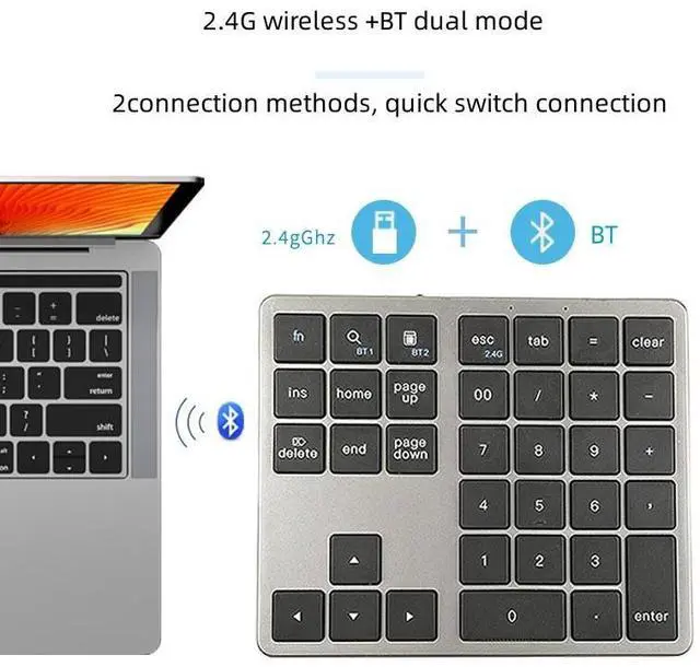 35 key numeric keypad Wireless BT dual-mode digital keyboard Silent & compatible with mobile phone and computer Multi-system compatibility, Ap-ple/Android /win Scissors foot structure, durable Balanced force, quick rebound, feel comfortable
