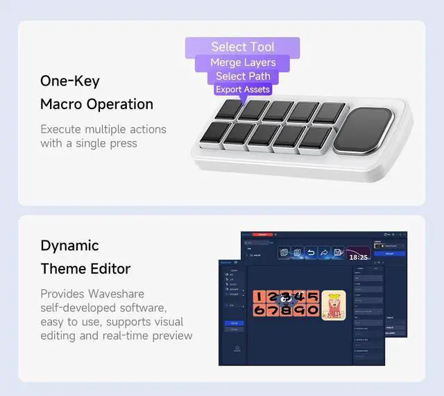 Provides Waveshareself-developed software,easy to use, supports visualediting and real-time preview