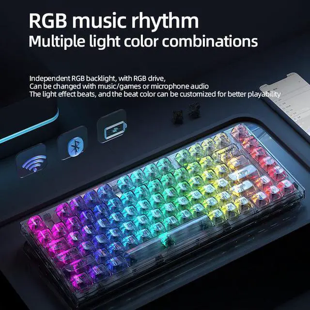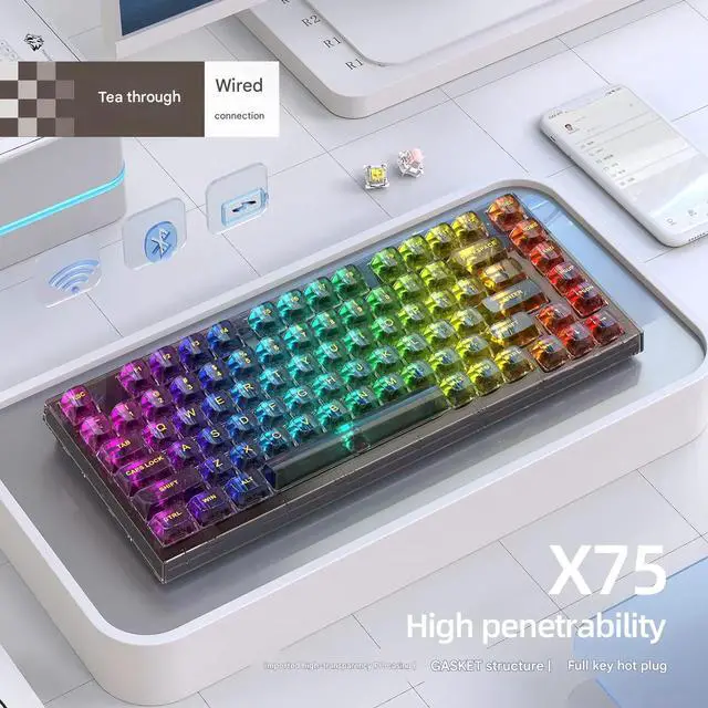 75% Keyboard X75 82 Keys DIY Wired Wireless 2.4G BT 3 Mode Transparent Hot Swappable Switch RGB Gaming Mechanical Kailh New USB