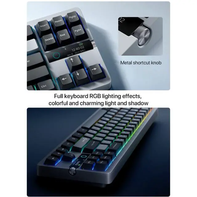 6. The small LCD display clearly displays the connection status, time and other information, intuitively selects the keyboard lighting effect, and sets the favorite picture at will, adding fun to boring work.