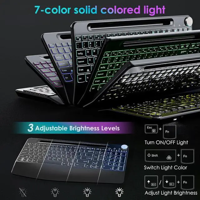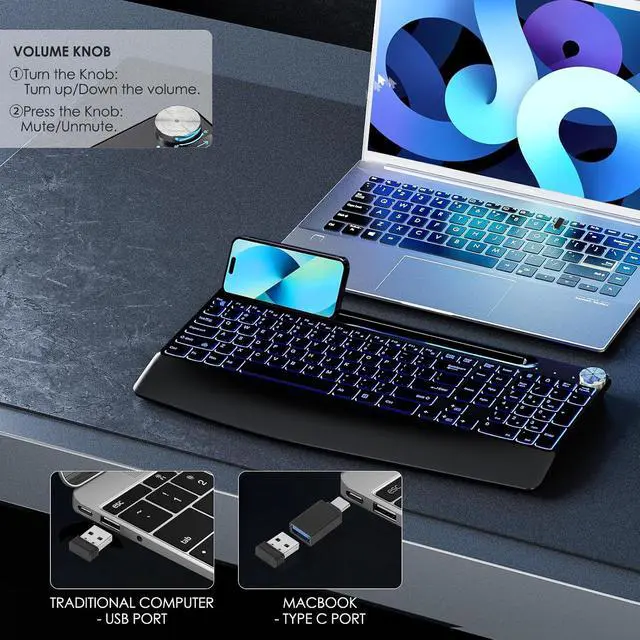 Ergonomic Design with Wrist Rest:The wireless keyboard has a comfortable touch and typing feel, and keyboard design with palm rest and folding holder, every detail is carefully crafted to fit your hand fully.