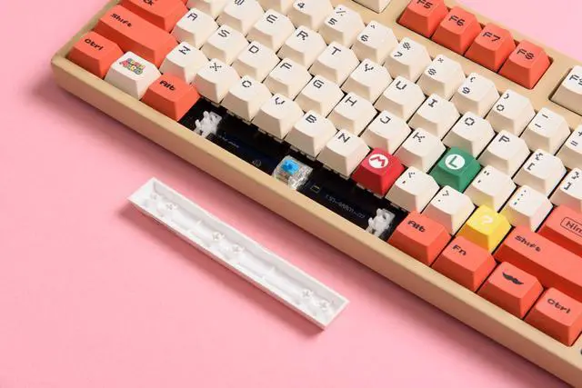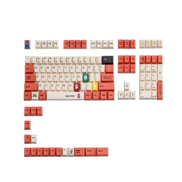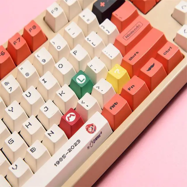PBT material Mario keycaps with five sides of heat transfer printing. DIY mechanical keyboard with factory-height customized keycaps. Bagged for easy storage. (Only the keycaps)