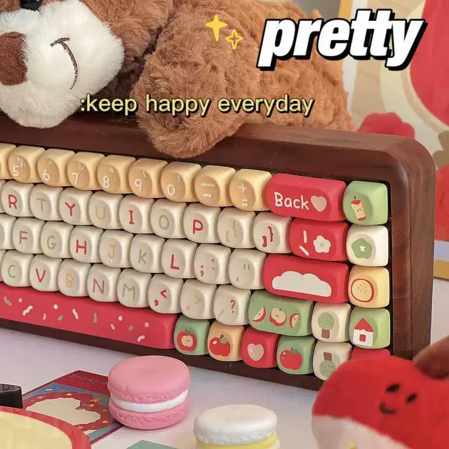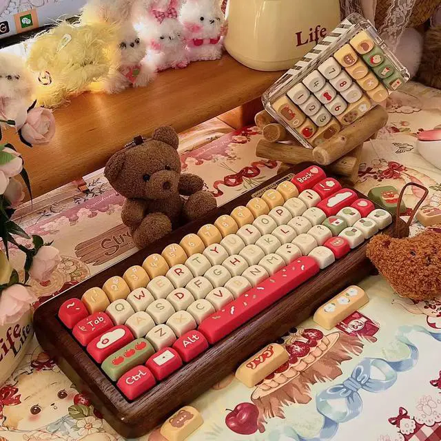 A cloud house - Apple Bear SOA highly customized mechanical keyboard keycaps cute keycaps Bluetooth heat transfer (only keycaps)