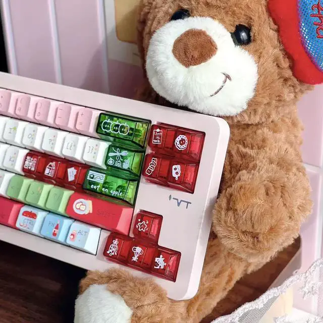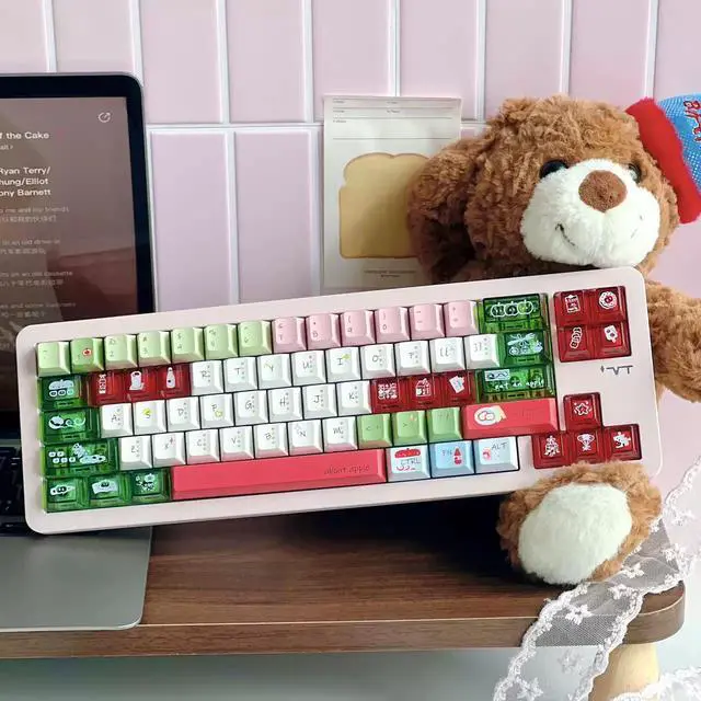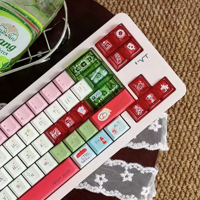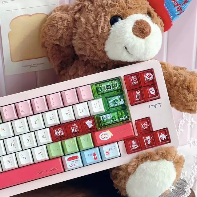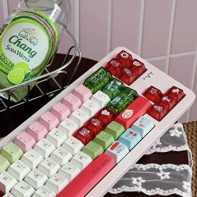 High-quality keycaps with Apple elements, featuring a simple and cute style, made of PBT and achieved through heat vaporization process. (Only the keycaps)