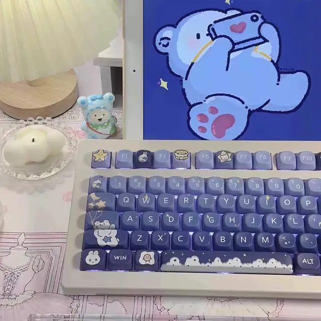 Little Bear's Star-Picking Soa Highly Customizable Mechanical Keyboard Keycaps Cute Keycaps Heat Transfer (Only Keycaps)