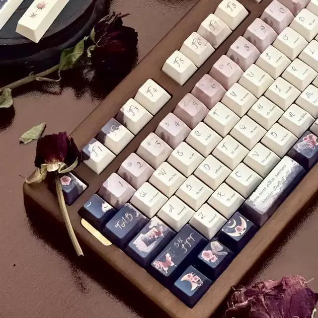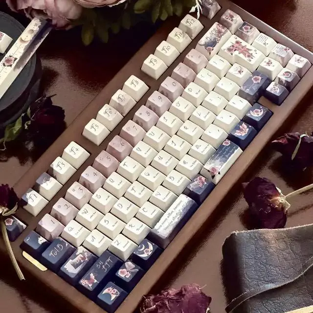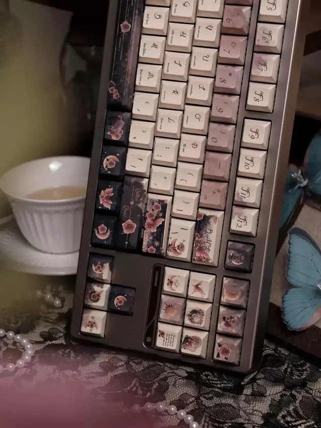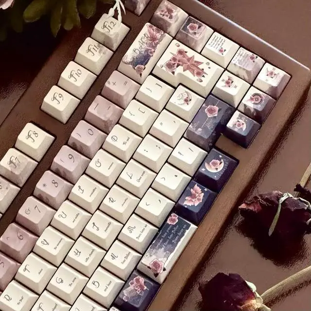 Rose keycaps with a retro and elegant style featuring butterfly and rose elements, simple design. (Only the key caps)