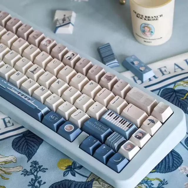 Piano pattern high-keycap customized mechanical keyboard keycaps with a retro and simple design. (Only the key caps)