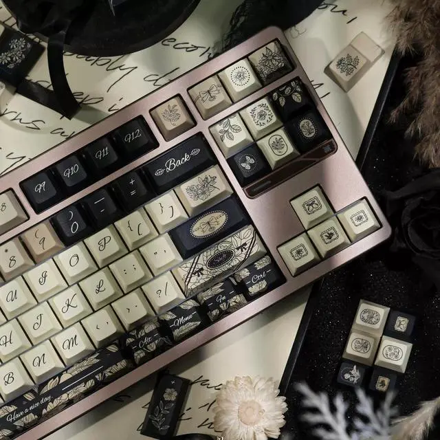 Foggy Rose keycaps with original factory height PBT on five sides, heat-sprayed five-sided custom mechanical keyboard keycaps, retro keycaps (only keycaps)