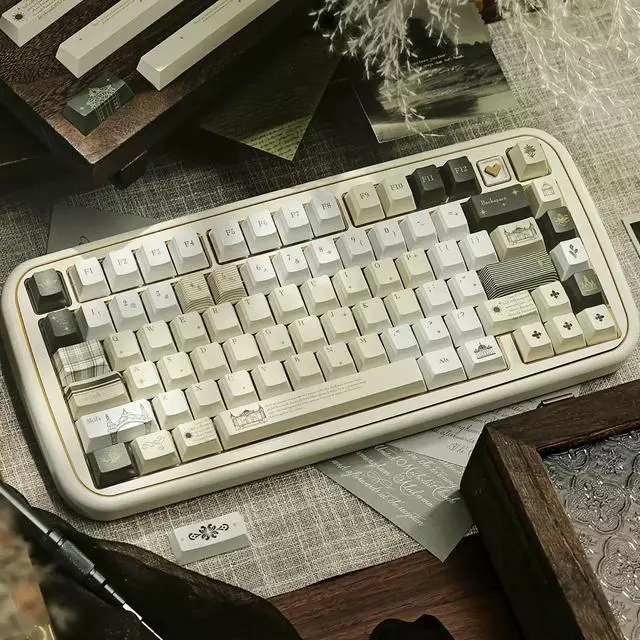 Foghide Manor Keycap Original Factory PBT Five-Sided Heat Transfer Customized Mechanical Keyboard Keycaps Retro Original Keycaps (Only Keycaps)