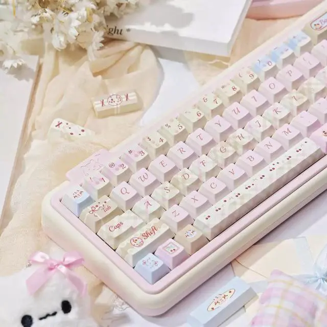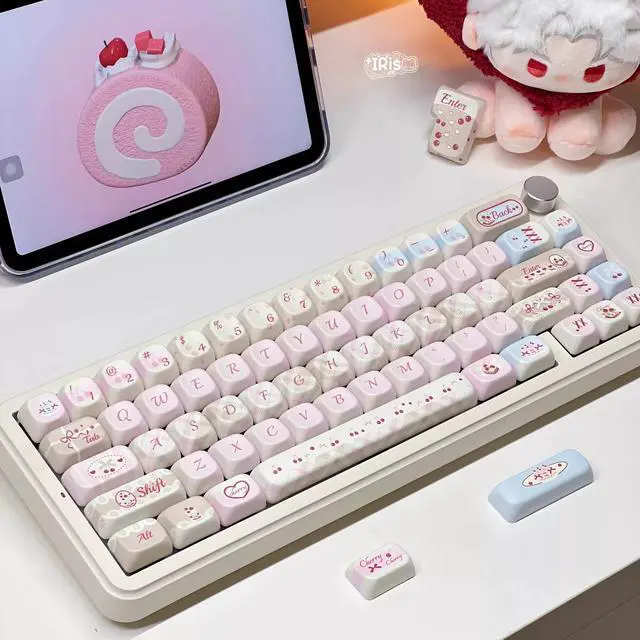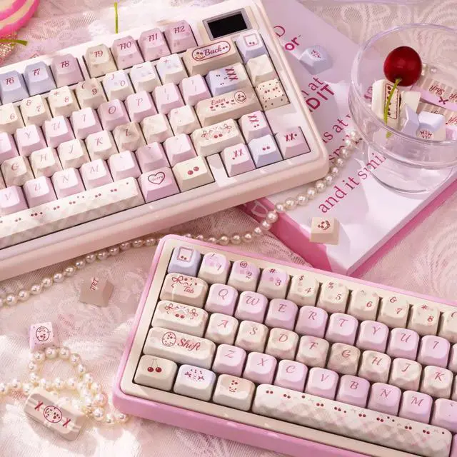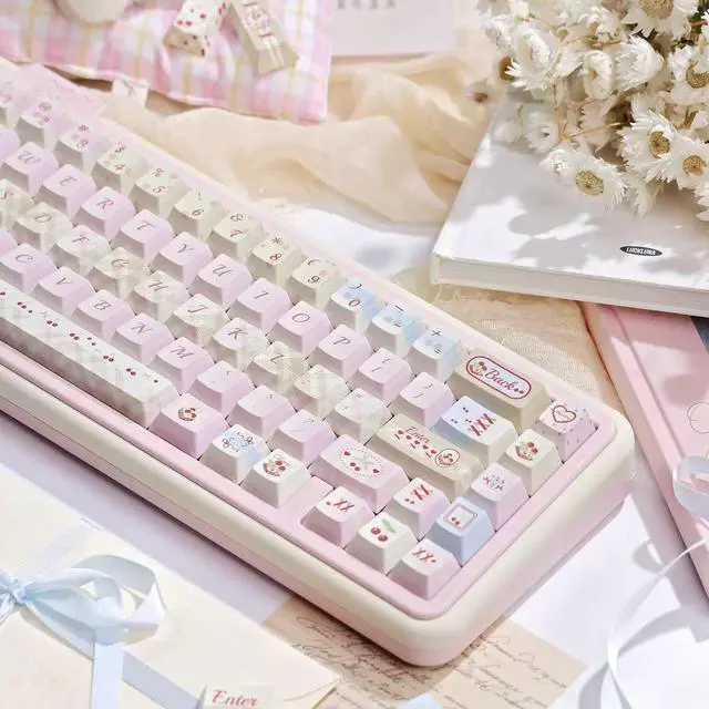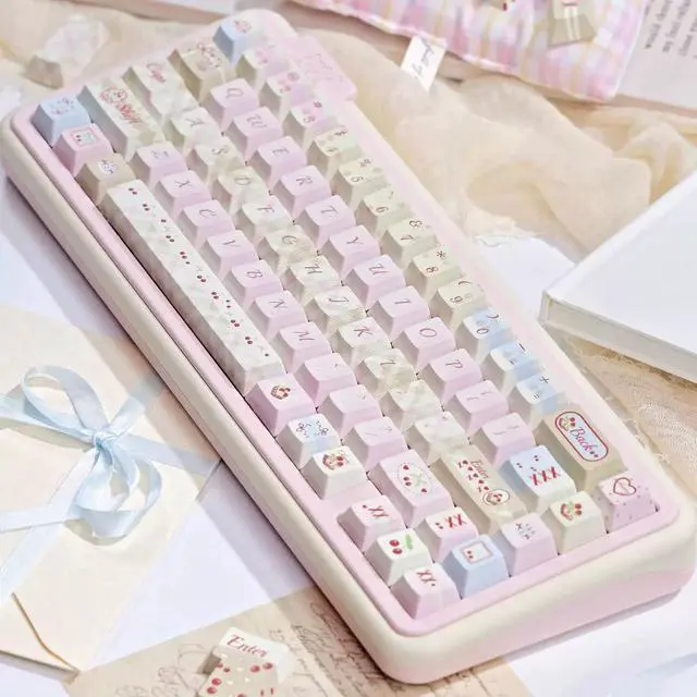 Cherry Milk Tea keycap, FOA original factory PBT five-sided thermal transfer customized mechanical keyboard keycap, pink keycap (only the keycap)