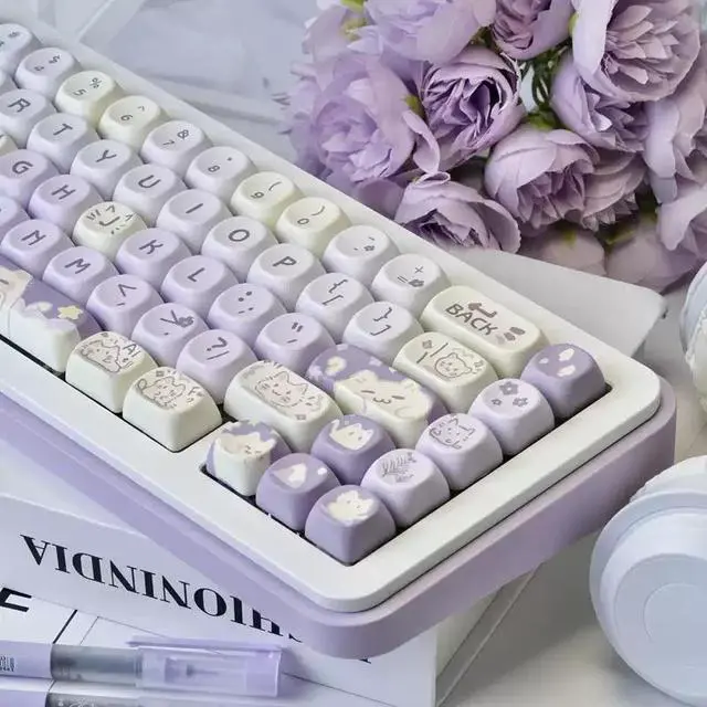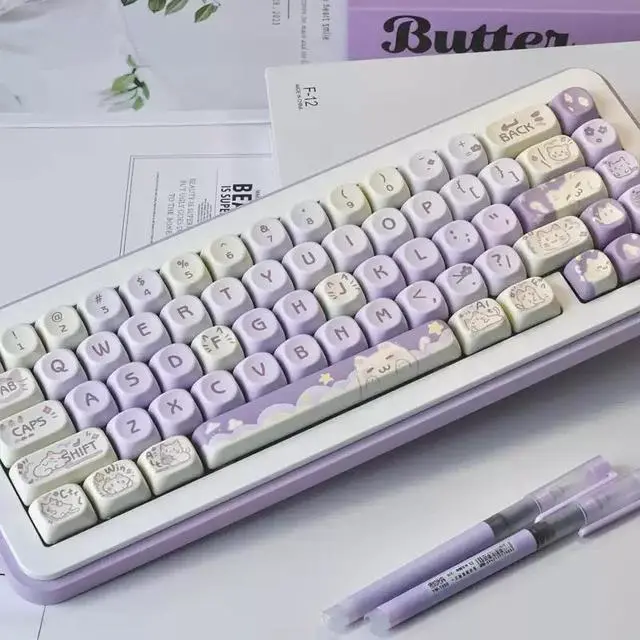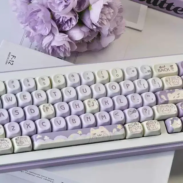 Yuanmi Cat Keycap High Appearance Level Cute Style Mechanical Keyboard Keycap Buttons Cross Shaft Blue Axis 61, 68, 98 (Only Keycaps)