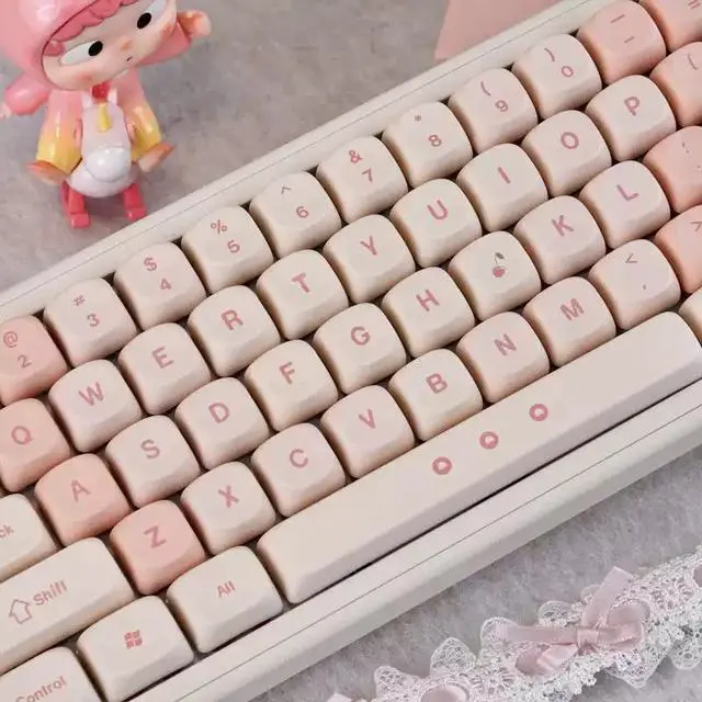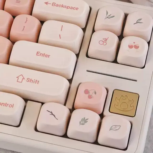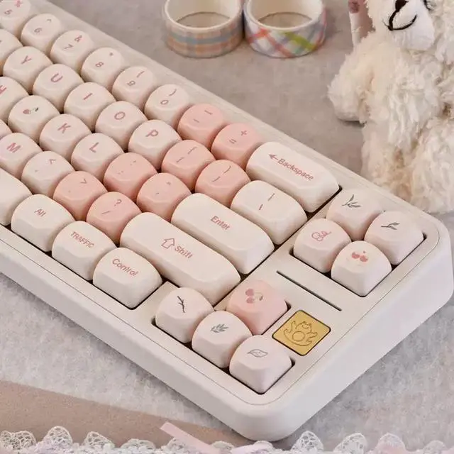Pink series cherry MOA keycaps in PBT thermal transfer, cute and original, with creative design, suitable for mechanical keyboards (only keycaps)
