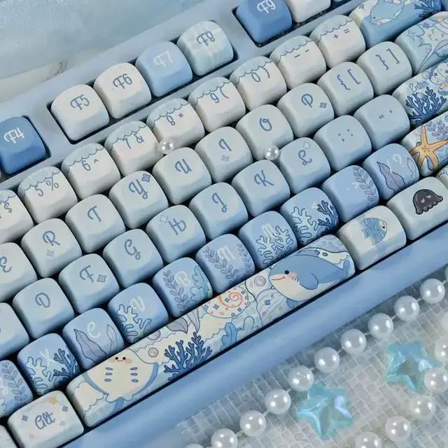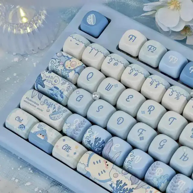 Blue Underwater World keycap with high appearance level, 5-sided heat vaporization MOA compatible mechanical keyboard 6068758798108 (only the keycaps)