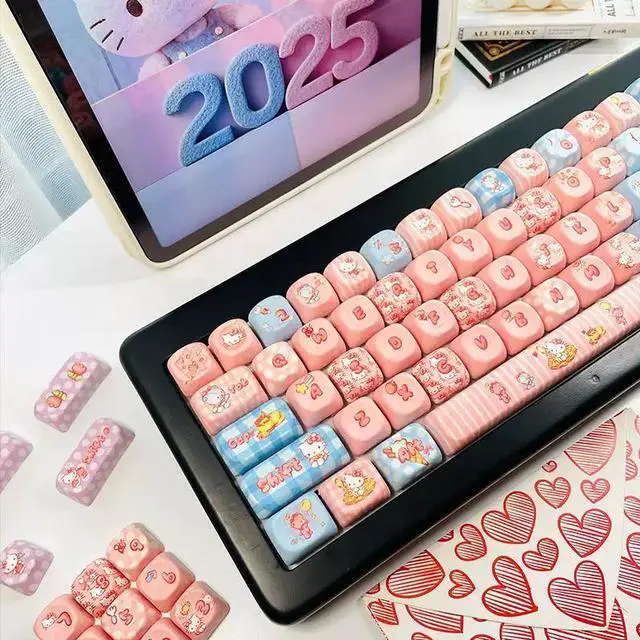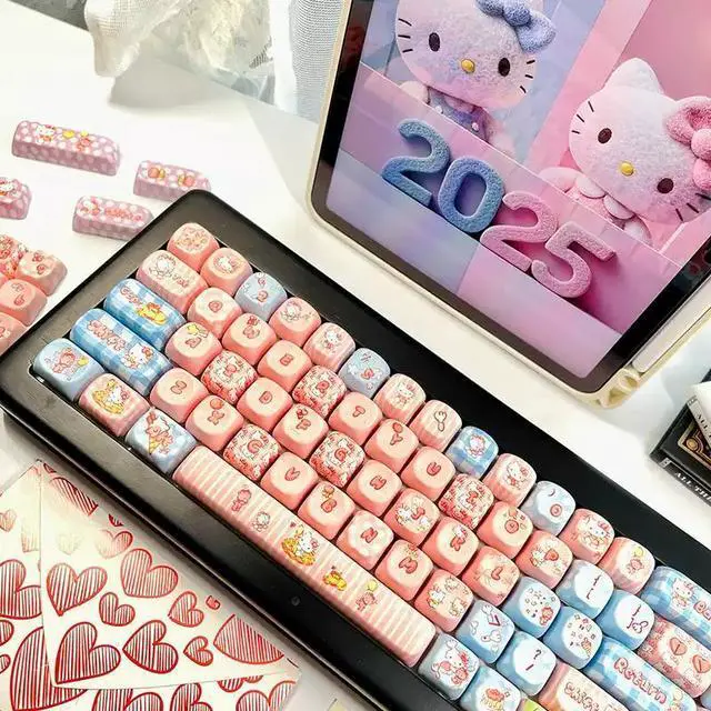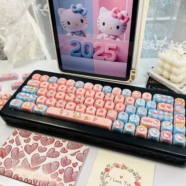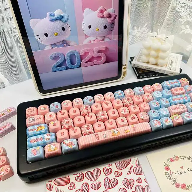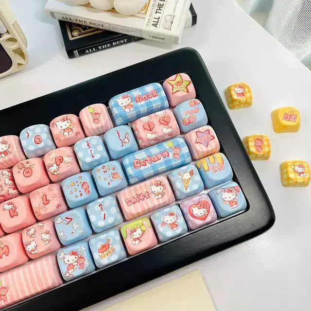 KT Cat theme keycaps, cute and original, with five sides, smooth and round MOA heat transfer, compatible with Miao Chong Qian Xing Er 68 (just the keycaps)