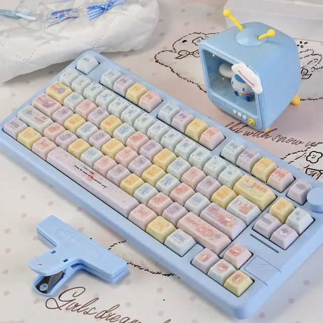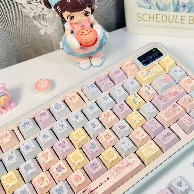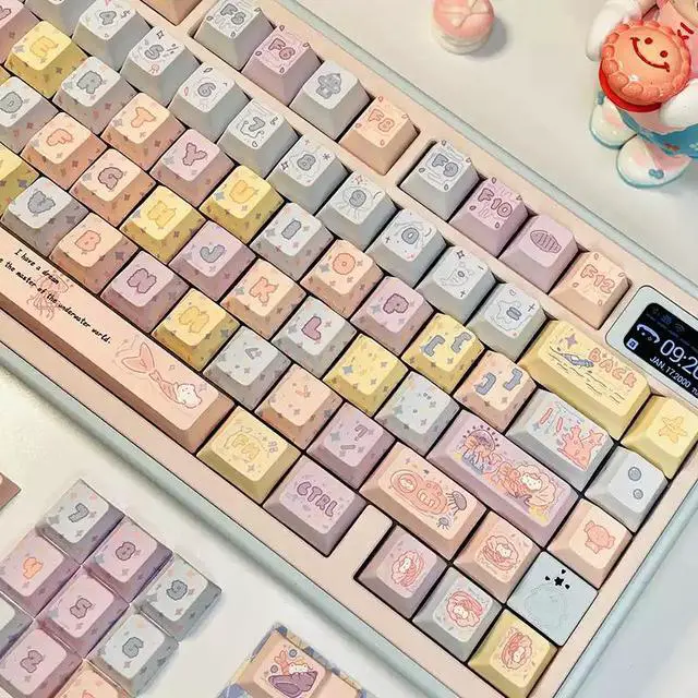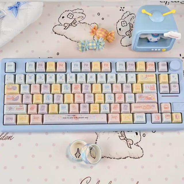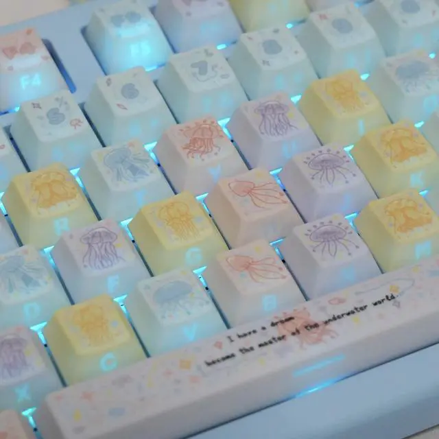 Dreamy Jellyfish Fireworks Powder Theme Keycaps with Personalized Side Engraving for Light Transmission PBT Five-Sided Heat Sintering Compatible with Mechanical Keyboards (Just the keycaps)