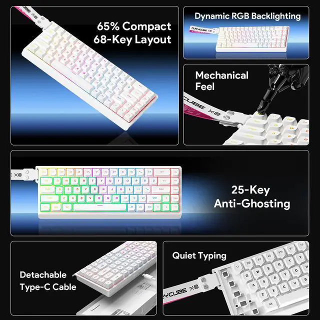 Rapid key rebound, offering a tactile experience similarto Brown Switch mechanical keyboards. Enjoy the pleasureof every keystroke, whether for gaming or home use.