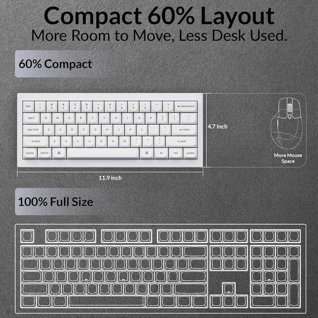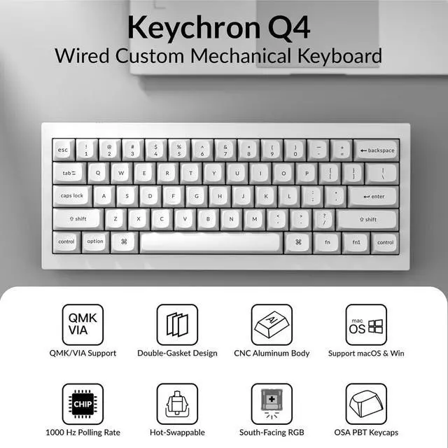 The Keychron Q4 is a fully customizable mechanical keyboard with a compact 60% layout. With a solid full aluminum frame, the Q4 is designed to be able to assemble easily for personalized premium typing comfort and as an ultimate choice for the mini keyboard.