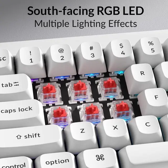 You can hot-swap the Keychron Q4 with almost all of the 3pin and 5pin MX style mechanical switches on the market (including Cherry, Gateron, Kailh, Panda, etc.) without soldering required. while the Gateron G Pro mechanical clicky blue switch providing unrivaled tactile responsiveness with up to 50 million keystroke lifespan. The PCB-mounted screw-in stabilizer for big keys such as space bar, shift, enter, and delete are designed for less wobbliness.