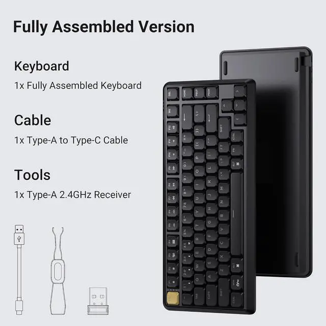 2.4G, Bluetooth 5.2, and Wired Modes: Switch seamlessly between three connection modes. Connect up to three devices via Bluetooth 5.2, or use the 2.4 GHz wireless or Type-C wired modes for stable, high-speed performance across setups