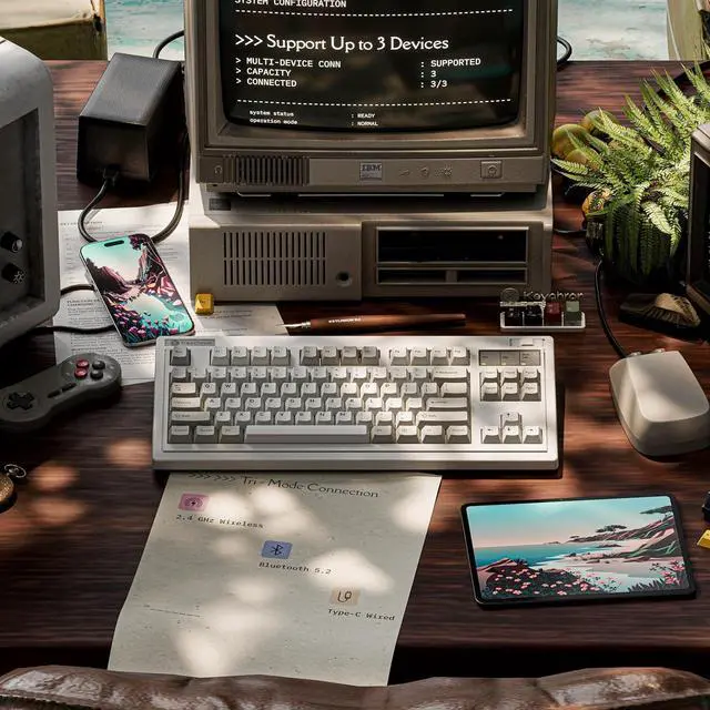 Wireless TKL Keyboard with Premium Features: The R3 is a wireless retro mechanical keyboard with a classic TKL (80%) layout, packed with high-end features like QMK firmware, non-shine-through PBT keycaps, gasket mount structure, acoustic foams for a satisfying "thock," and Keychron super switchdelivering a refined and responsive typing experience.