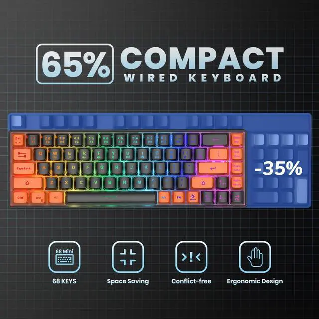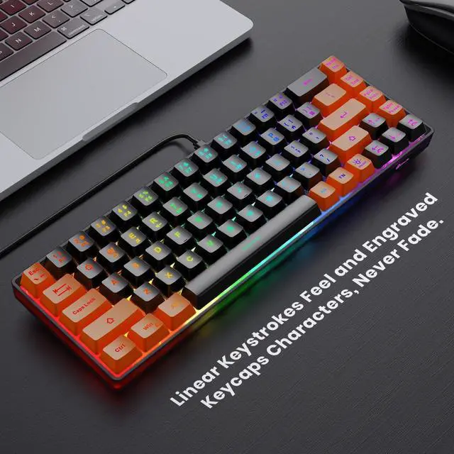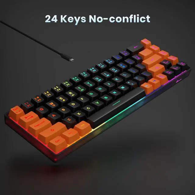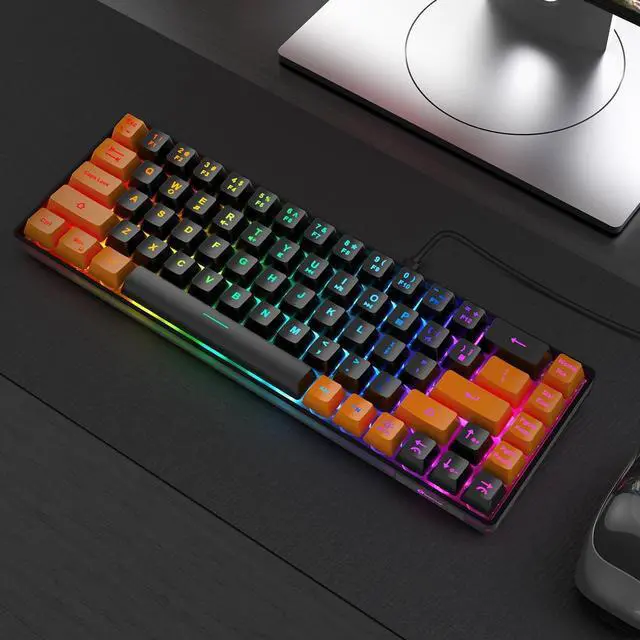GEODMAER 65% Gaming Keyboard, LED Backlit Mini Wired Keyboard, Ultra-Compact Anti-Ghosting No-Conflict 68 Keys Membrane Gaming Wired Keyboard for PC Laptop Windows Gamer(Black-Orange)