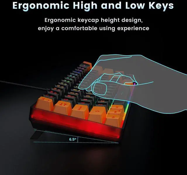 65% Compact DesignGEODMAER Wired gaming keyboard compact mini design, save space on the desktop, novel black & silver gray keycap color matching, separate arrow keys, No numpad, both gaming and office, easy to carry size can be easily put into the backpack