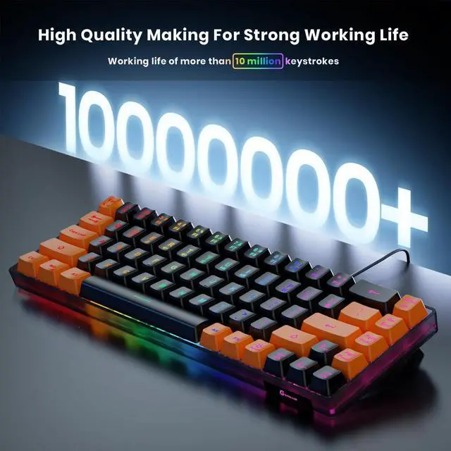 Strong Working LifeWired gaming keyboard has more than 10,000,000+ keystrokes lifespan, each key over UV to prevent fading, has 11 media buttons, 65% small size but fully functional, free up desktop space and increase efficiency