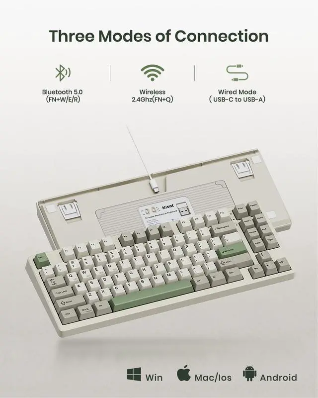 Connect How You LikeYou will be obsessed with the tri-mode connectivity: Wired USB-C, 2.4GHz wireless, and Bluetooth 5.0(3 channels supported). Easily switch between Windows and Mac system to work across your PC, laptop, tablet, smartphone, or gaming console. Whether youre plugging in for gaming or going wireless for working, its got you covered with minimal latency. When connected via the USB-C cable, it operates in wired mode and charges the built-in 4000mAh battery at the same time.
