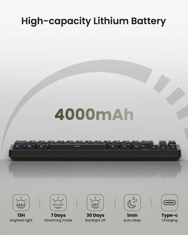 Connect How You LikeYou will be obsessed with the tri-mode connectivity: Wired USB-C, 2.4GHz wireless, and Bluetooth 5.0(3 channels supported). Easily switch between Windows and Mac system to work across your PC, laptop, tablet, smartphone, or gaming console. Whether youre plugging in for gaming or going wireless for working, its got you covered with minimal latency. When connected via the USB-C cable, it operates in wired mode and charges the built-in 4000mAh battery at the same time.