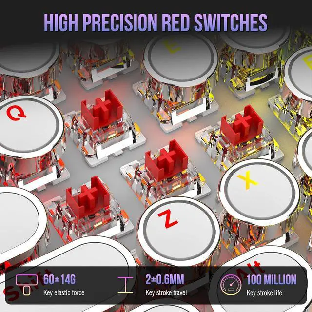 2. Smooth Red Mechanical Switches Equipped with red mechanical switches, this keyboard delivers a quiet and smooth keystroke with minimal resistance. Ideal for both gaming and long typing sessions, the red switches ensure a faster response and less noise, making it suitable for office environments and late-night use.