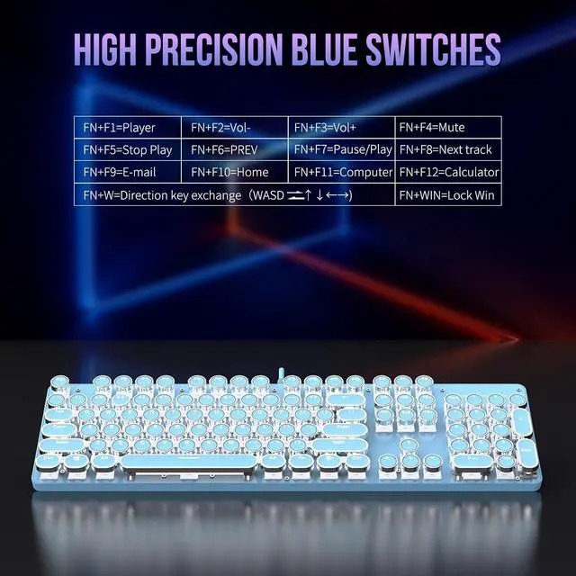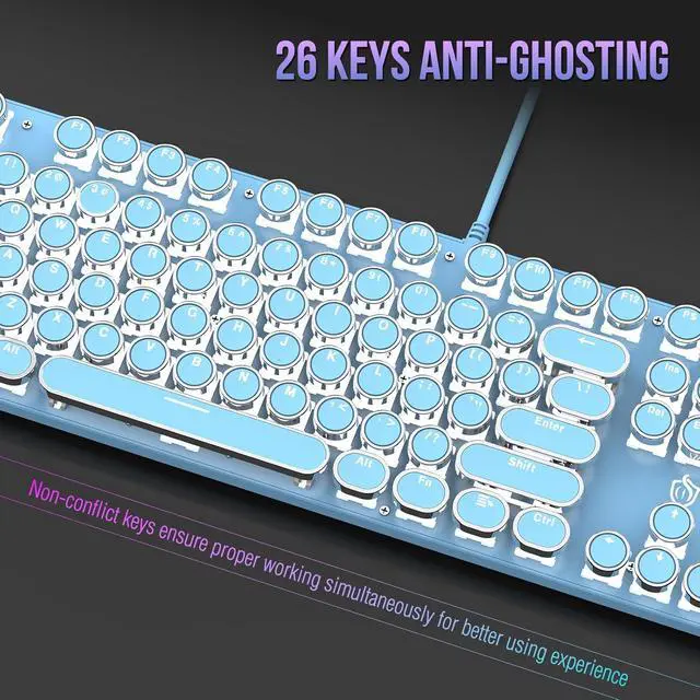 Vintage Typewriter-Inspired Design This mechanical keyboard features a unique round keycap design inspired by classic typewriters, offering a nostalgic feel with a modern twist. The ergonomic layout provides a comfortable typing experience, perfect for both work and play.