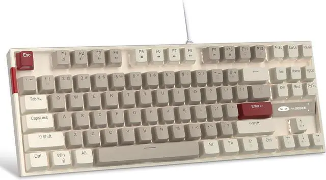[Ergonomic mechanical keyboards]: stylish retro grey white mash up 75% layout, come with extra 16 red keycaps, double-shot injection non-slip suspension keycap, splash-proof design, durable metal panel enough to protect it from scratch, also firm kickstand feet adjustable typing angle.