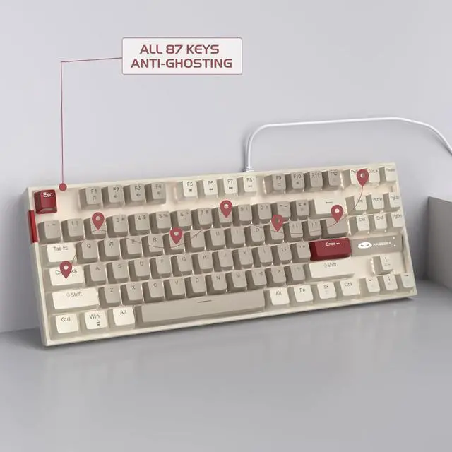 [Full anti-ghosting keyboard]: all 87 keys are no conflict, allow multiple keys to work simultaneously with high speed for a reliable connection, have 12 multimedia keyboard, great for gamer, typist, programmer, writer etc.
