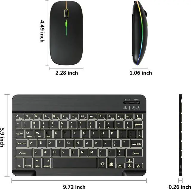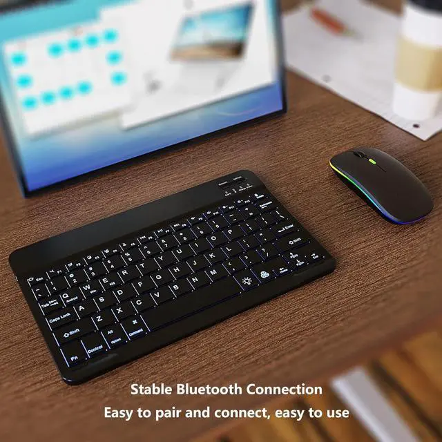 Stable Bluetooth Connection: The Bluetooth keyboard and mouse set are easy to pair and connect, easy to use. Advanced Bluetooth technology provides a powerful and reliable connection with virtually no delays or dropouts. The keyboard with scissor switch structure makes your typing comfortable and quiet. It features multimedia hotkeys like play/ pause, volume, backward & forward, helping you to increase your workflow and productivity. Ultra thin and portable design, easy to carry