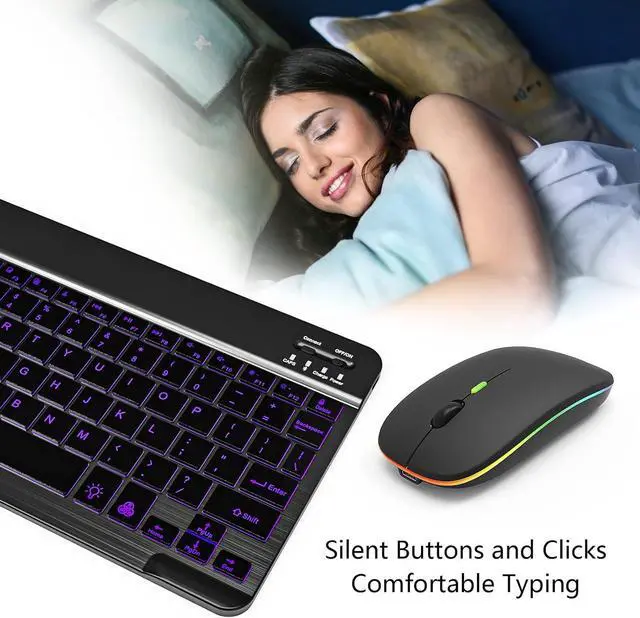 Rechargeable Battery: Built-in rechargeable battery, easily charged with the included charging cable, say goodbye to repeated battery replacement. Automatic sleep mode helps to extend battery life and save energy. You can click any key to wake them up. You can turn off the keyboard and mouse power when not in use for a long time