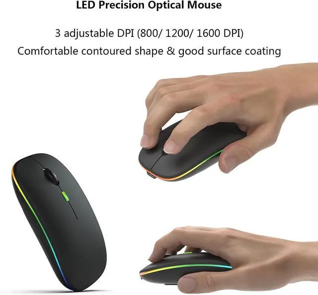 LED Silent Optical Mouse: Good surface coating provides you with a comfortable and skin-friendly feel. The mute click reduces noise by 90%, making it an ideal quiet mouse for office, home, conference room, library, so you can focus on work, study without disturbing others. 3 adjustable DPI (800/ 1200/ 1600 DPI), freely to satisfy daily work. High-definition optical tracking enables responsive cursor control for precise smooth tracking. The backlight mode of the mouse cannot be changed